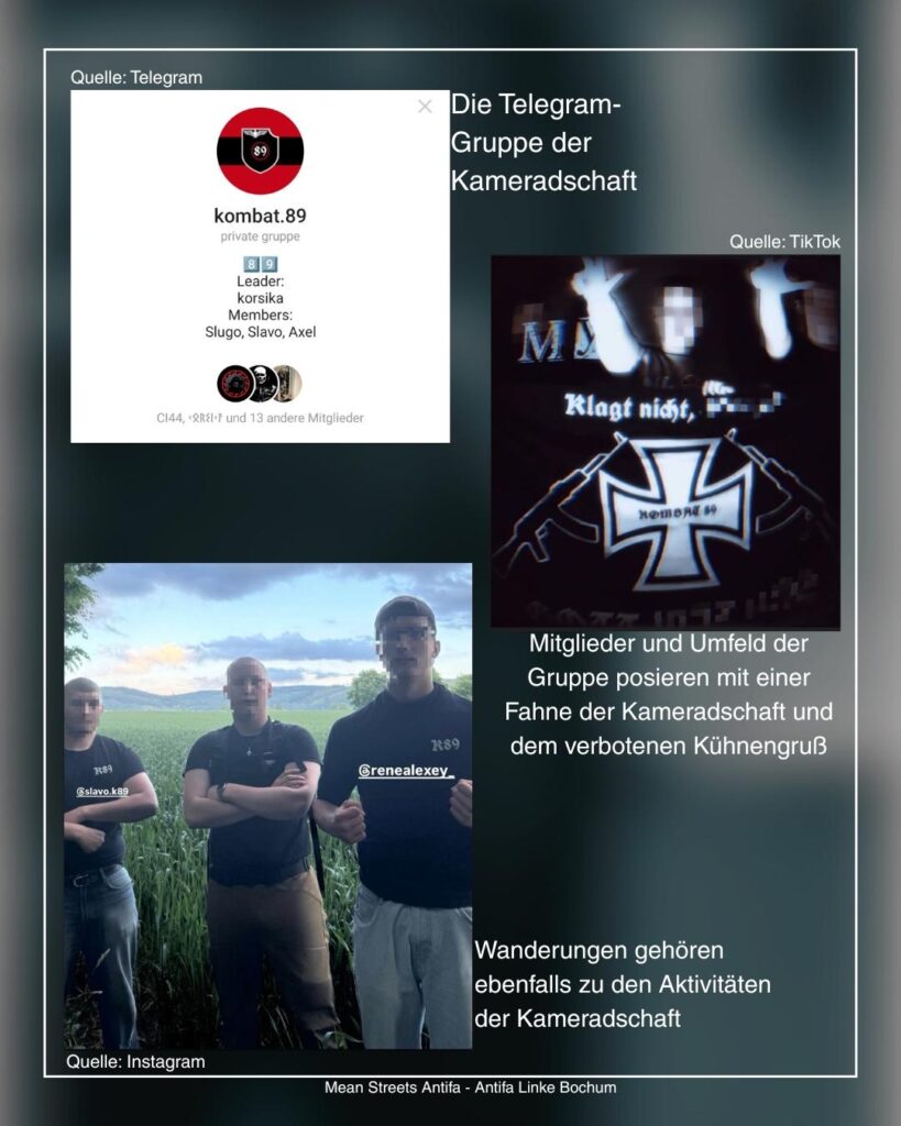 Sie propagieren dabei ihre rassistische und menschenverachtende Ideologie über hastig zusammengeschnittene Kurzvideos mit markanter Musik und albern anmutenden Posen, deren Fokus dabei auf der Darstellung von Männlichkeitsidealen, Kampfsport, Gewalt, Kameradschaft innerhalb der Gruppe und Abgrenzung, zu allem, was sie als Feinde und minderwertig ansehen, liegt. Die jungen Rechten erstellen hierfür eigene interne Kameradschaftsshirts und Fahnen mit dem Namen “Kombat89”.“ Die 89 steht hierbei für die Hagener Postleitzahl 58089, welcher die Stadtteile Haspe und Wehringhausen umfasst.